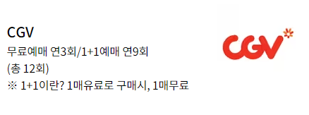 - 본인 무료예매 연3회/ 1+1예매 연9회 (총 12회, 1+1이란? 1매 유료로 구매시, 1매 무료)
